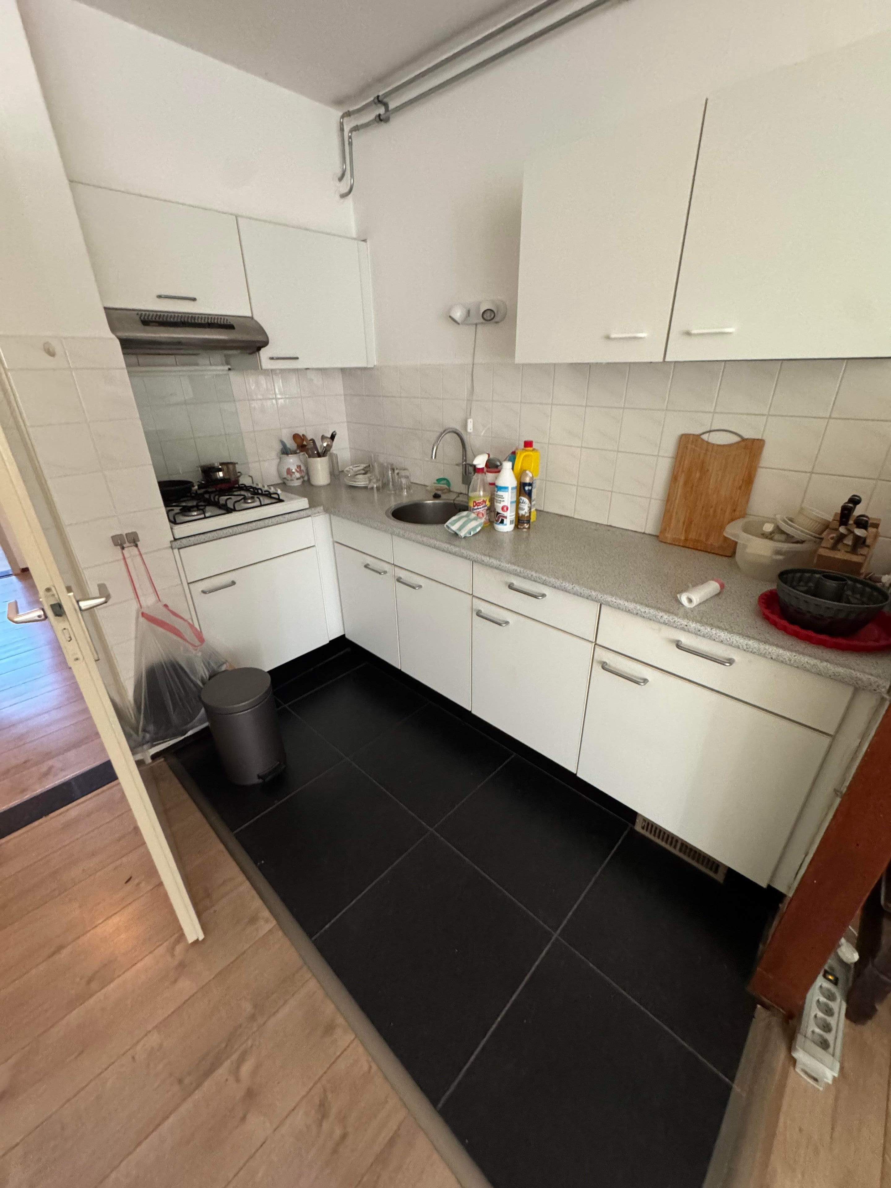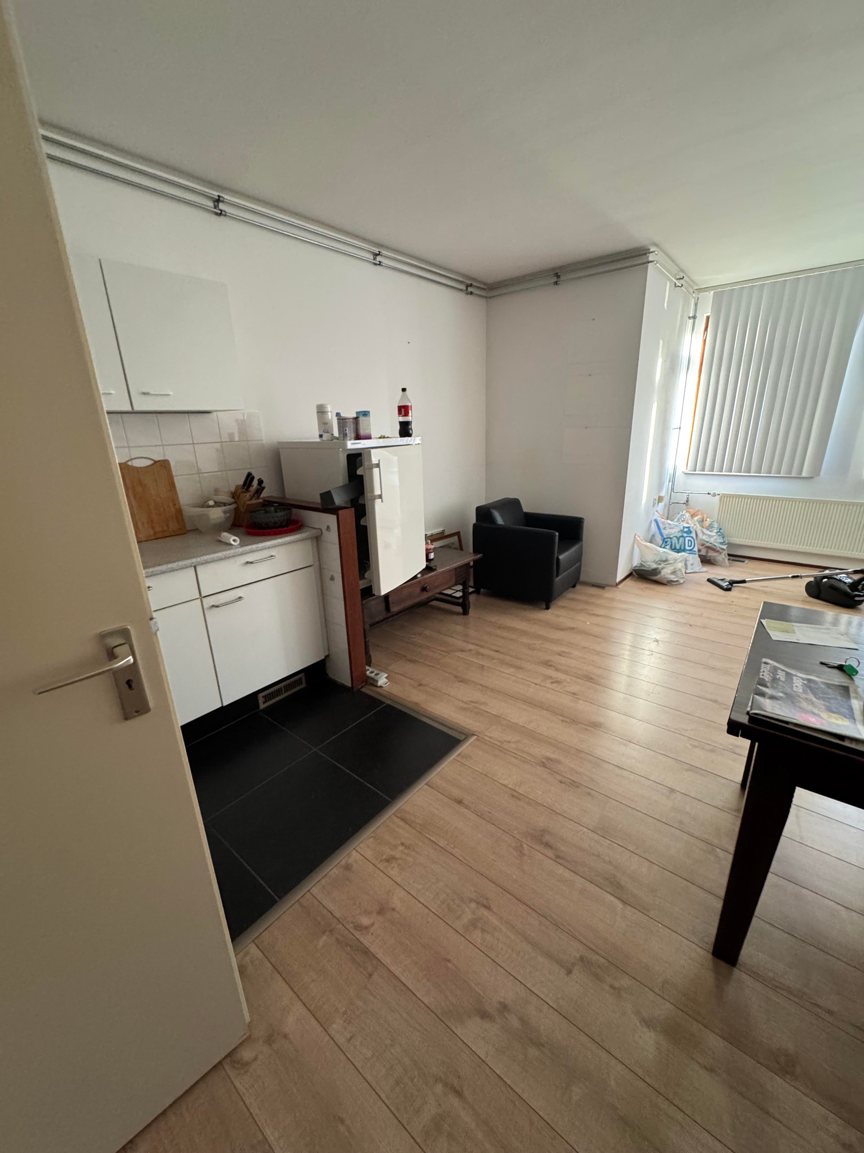 Hal met meterkast, woonkamer (voorzien van moderne laminaatvloer) met open keuken, 1 slaapkamer met toegang tot het terras, badkamer met ligbad, wastafel, toilet, c.v.-ruimte met aansluiting voor wasmachine